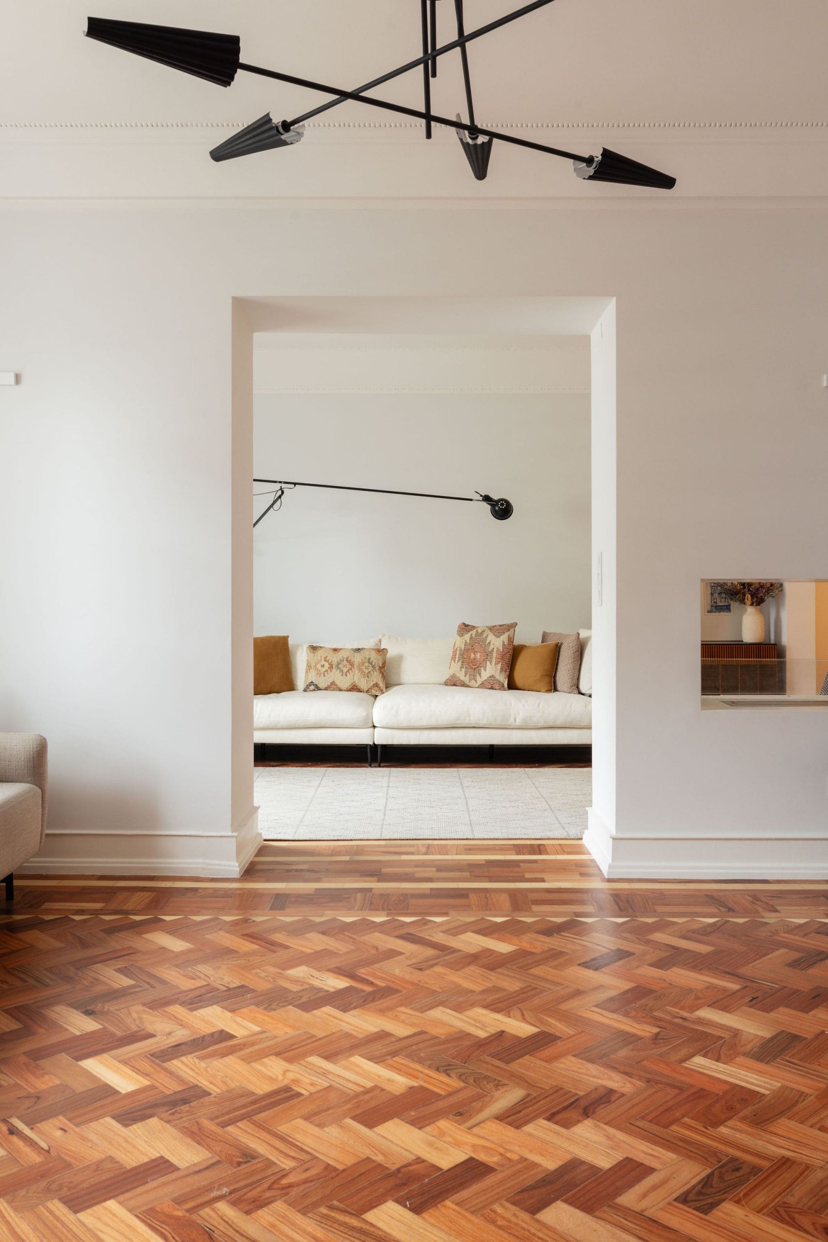 The project sought to enhance the most significant pre-existing elements, preserving their notable details and the identity of the space. At the same time, new elements were introduced, namely bespoke joinery and integrated storage solutions, contributing to a more functional and coherent overall reading.